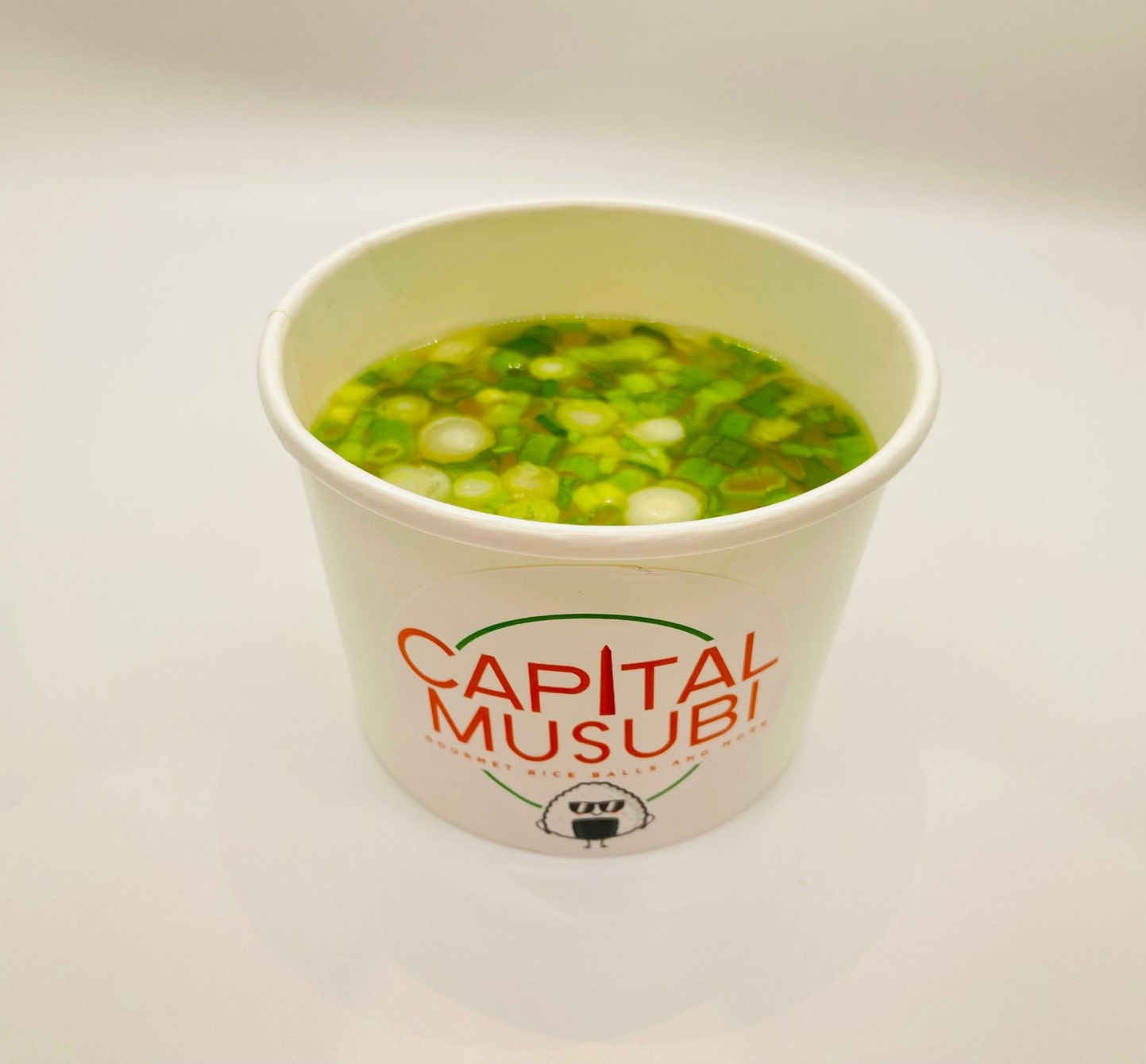 Hot Miso soup with tofu and green onion.