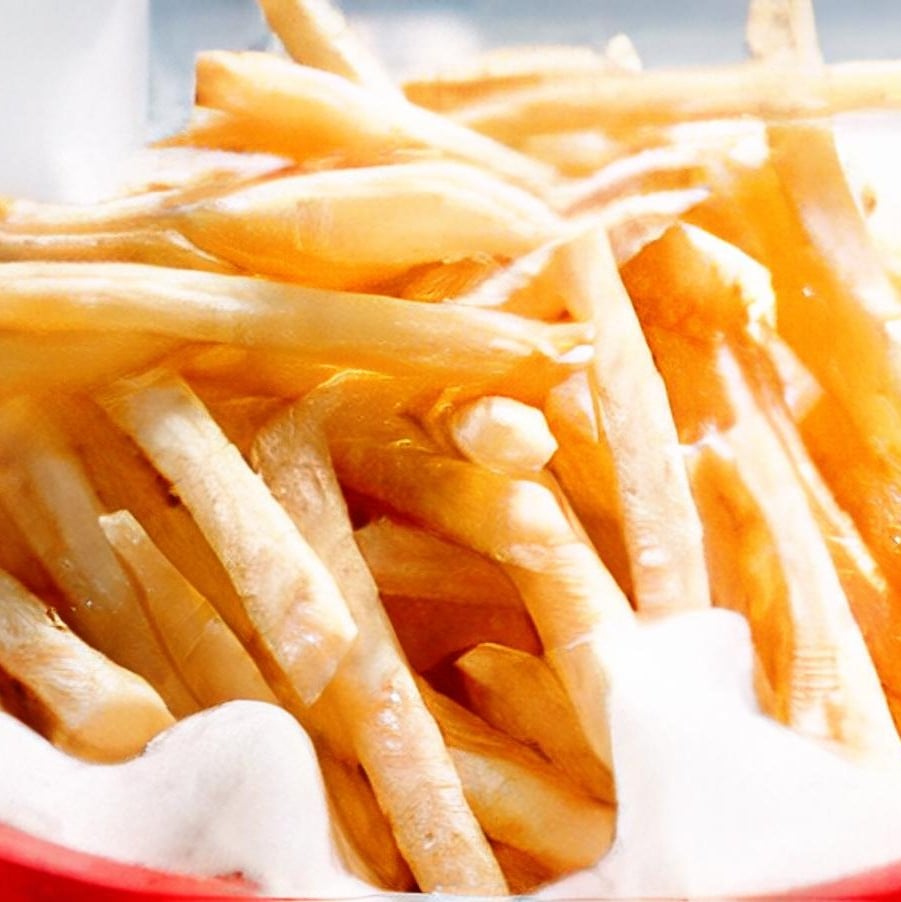 Freshly fried fries dusted with umami seasoning.