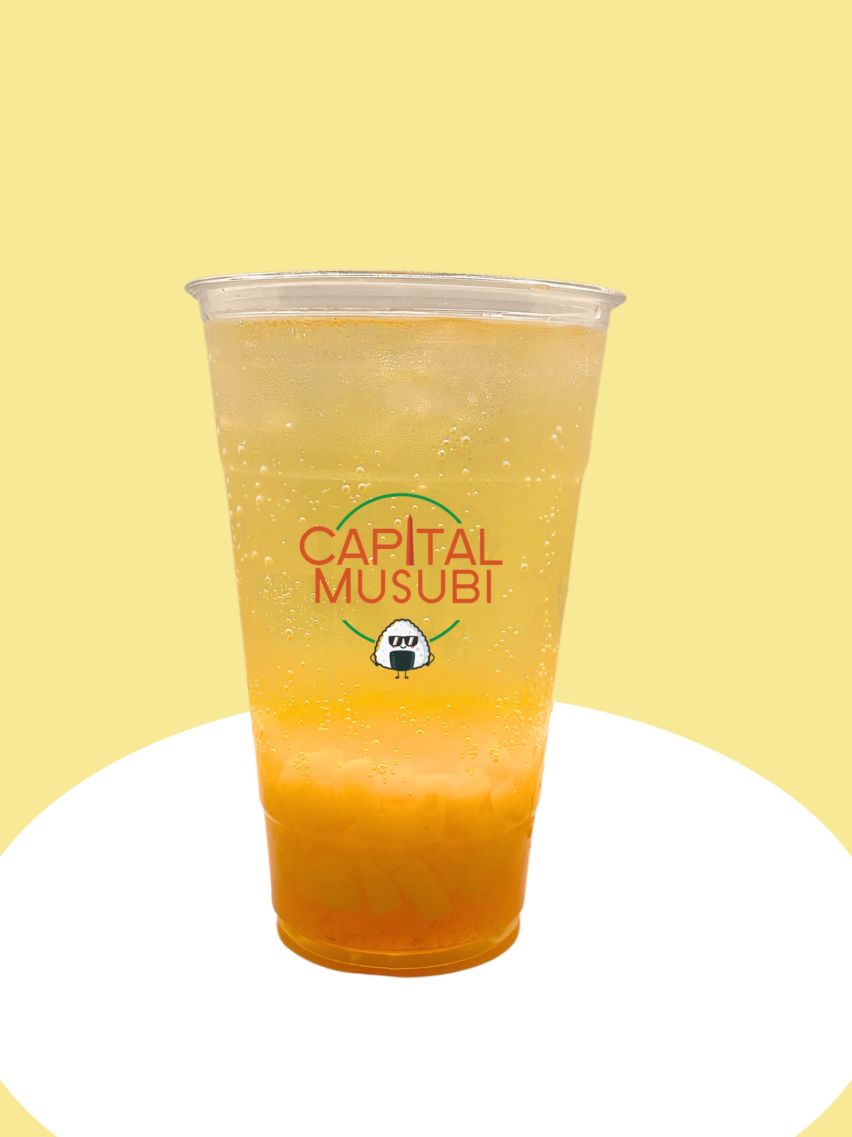 Passion Fruit puree syrup with Passion fruit jelly with refreshing soda water.