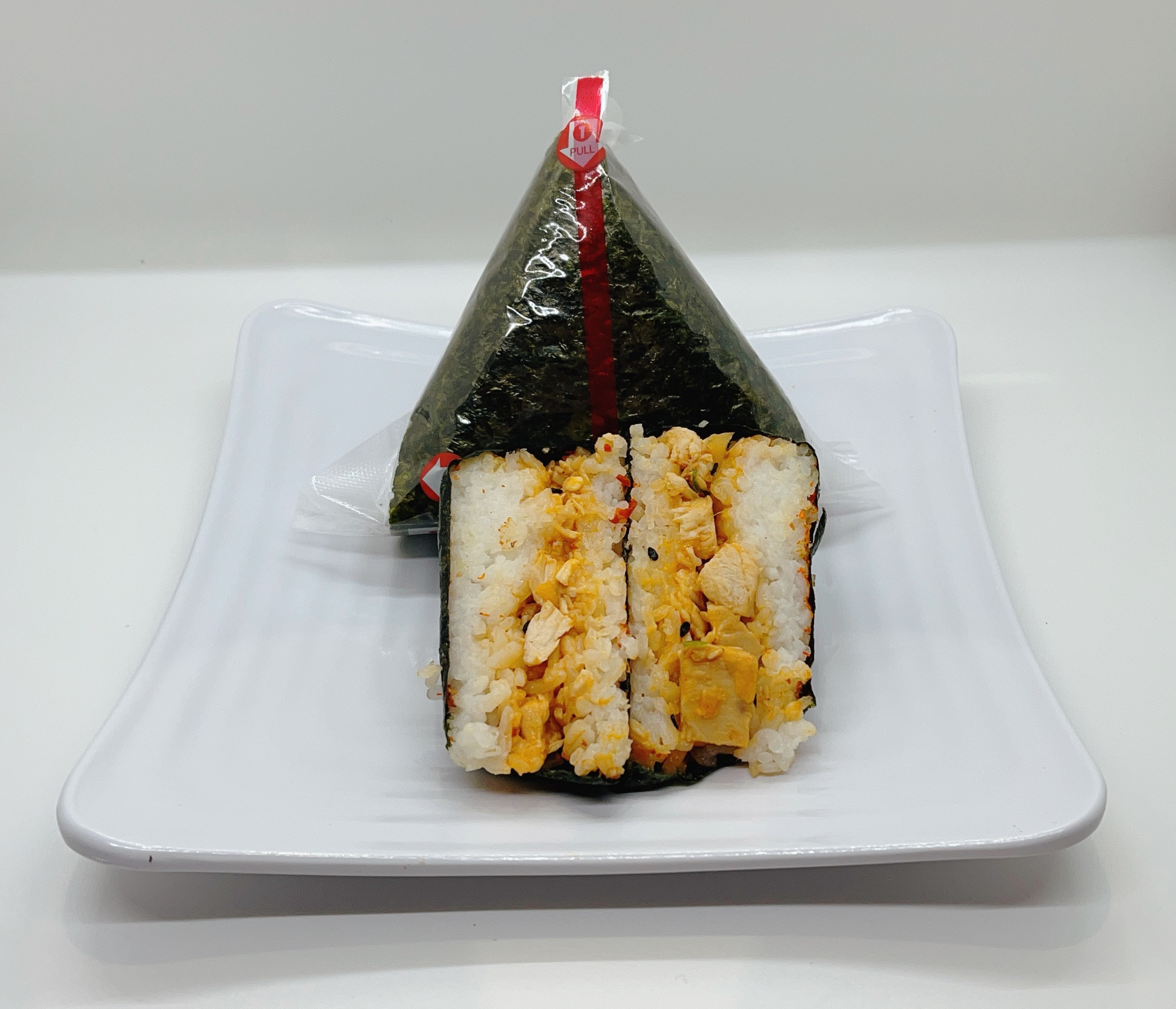 Supersize musubi (Chicken karaage, pickled cabbage, toasted sesame seeds, cm mayo) wrapped in a roasted seaweed sheet.